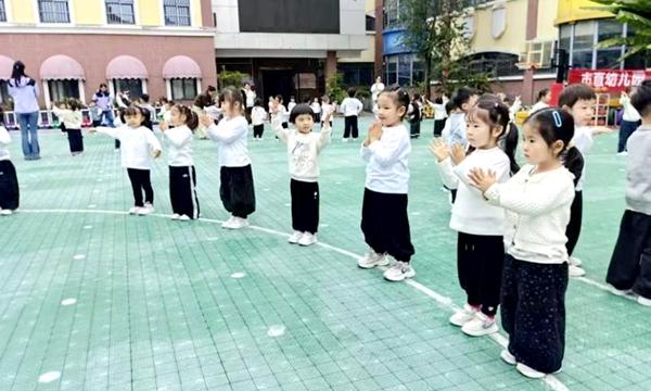 小班的小朋友们则进行了精彩的表演赛,虽然他们年龄最小,但也展现出活力满满的精神状态。在老师的带领下,他们认真地做着每个动作,吸引了全场的目光。