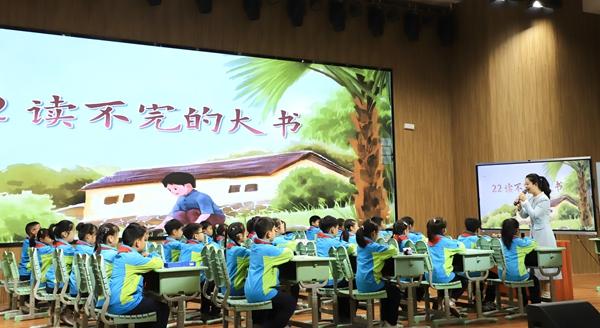 活动期间,9节优质展示课、公开课及说播课精彩呈现,池州与南京两地名优教师各展所长。池州市贵池区人民路小学胡思偲、孔令朋老师分别执教《读不完的大书》《金色的草地》,通过情境创设、词句积累与仿写练习,引导学生感受自然之趣,落实语言运用核心素养;南京市夫子庙小学陈烨老师带来的《鸟的天堂》,以“寻美之旅”为主线,通过小组合作、图文结合等方式,让学生在品读中体会人与自然的和谐之美。