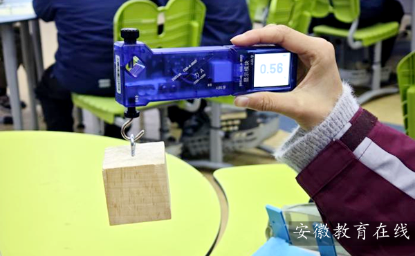 活动伊始,合肥市师范附属小学崔芳玲老师率先执教六年级《斜面》一课。崔老师紧扣“科学探究+审美体验”双主线,从传统取水工具“连筒”引入,引导学生理解斜面的科学概念。课堂上,她创新运用数字化传感器,组织学生分组测量并实时收集数据,对比直接提升与斜面搬运的力,使学生在实践中掌握“斜面可以省力”的原理,同时感受科学探究的严谨之美与小组协作的和谐之美。崔老师还引导学生关注盘山公路、梯田等生活中斜面的美学形态,理解工具功能与审美设计的统一。