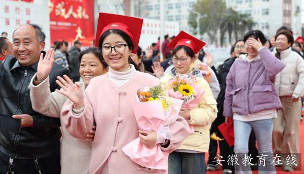 仪式现场,诸多暖心细节,定格成青春里最动人的画面。学校领导与家长代表亲手为每位少年戴上成人礼帽,一顶顶礼帽,承载着长辈的殷殷期许,更象征着成长与责任的传递。学子们深深鞠躬行拜谢礼,弯腰的弧度里,满是对父母养育、师长教诲的诚挚感恩,不少家长眼中泛起欣慰的泪光。学生代表为班主任戴上红围巾,一句句轻声的“老师,您辛苦了”,道尽学子心底的敬意,师生间的温情,在春日里静静流淌。