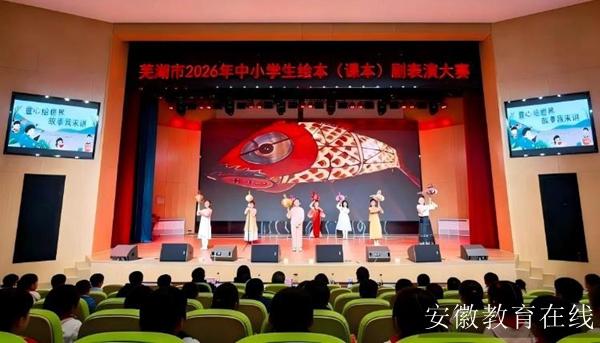 近日,芜湖市2026年中小学绘本(课本)剧表演大赛现场决赛在中江小学报告厅精彩上演。来自芜湖市各县市区层层选拔的28所学校、300余名中小学生齐聚一堂,用真挚的情感和生动的演绎,将书本中的经典故事搬上舞台,呈现了一场融思想性、艺术性、教育性于一体的视听盛宴。