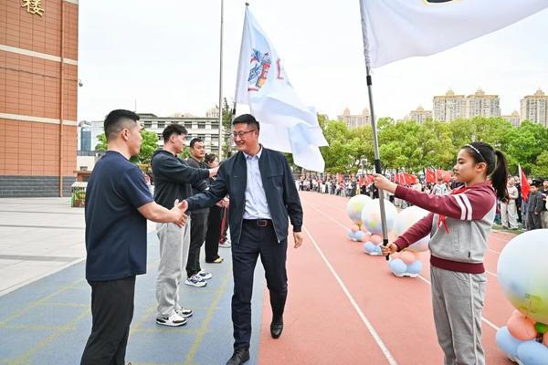 王慧副校长在讲话中,细心解读“1+5+n”活动内涵,明确“1”为教师健康引领、“5”为五大学生体育联赛、“n”为多元趣味体育拓展。第六届校园文化艺术节项目内容包含个人赛、集体赛,涵盖合唱、舞蹈、戏曲、器乐等多个项目。同时阐明活动以体育人、以美育人,助力和乐少年全面发展的育人方向;丁元春校长郑重授旗,旗帜迎风飘扬,承载着学校对艺体教育的深切关注与大力支持;校党委书记吴燕致辞时,着重强调“健康第一”理念,更语重心长地嘱托全体师生:“健康是成长的根基,如同数字‘1’,而我们所有的收获与成长,都是后续的‘0’,唯有筑牢健康这个‘1’,方能彰显价值、成就自我。”随后,吴燕书记宣布活动正式开幕,现场气氛热烈。