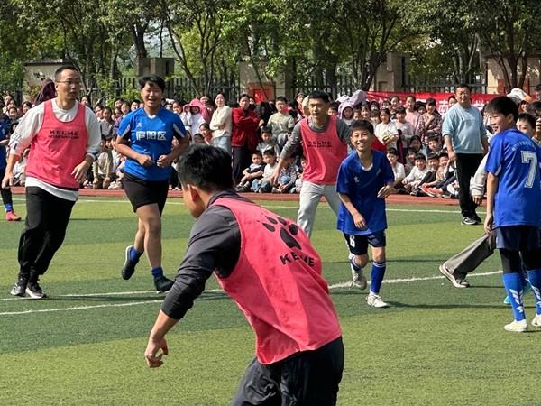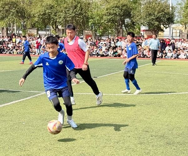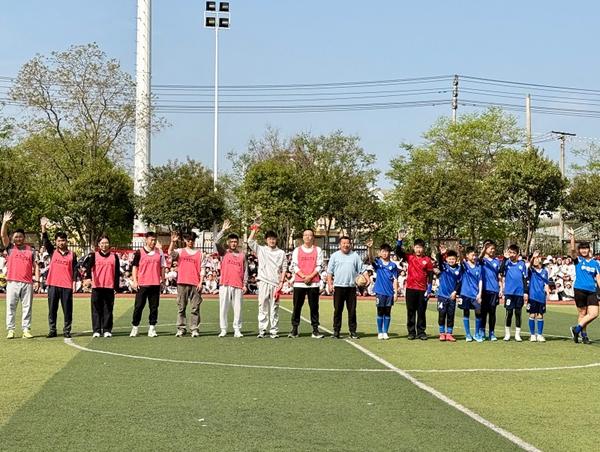 在全场热烈的掌声中,学校党支部书记李必文郑重宣布联赛开幕!随后,李书记、邹校长共同为比赛开球,正式开启本次联赛揭幕战——教师队对阵五六年级足球校队,将现场气氛瞬间推向高潮。