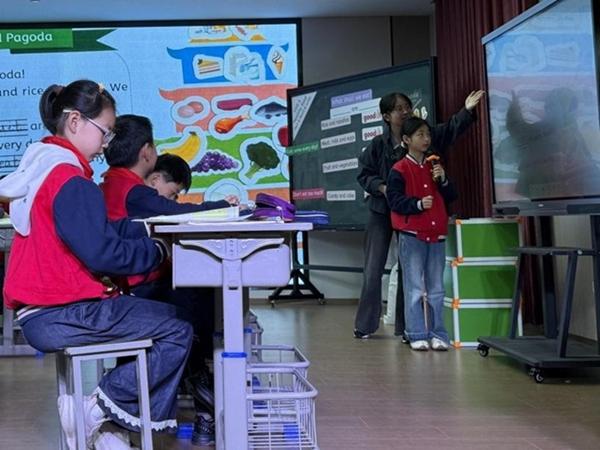 李菁晶老师的(人教版四年级下册《Unit 4 Going Shopping Part B Read and write》)课堂中,教师充分关注学生的语言表达与思维发展,将词汇、句型教学融入主题任务,实现了“学中用、用中学”,体现了单元整体教学的连贯性与实践性。段晶晶老师的(人教版四年级下册《Unit 5 Farms and us A Let’s talk》)课堂氛围活跃,教师注重引导学生观察、思考与表达,将语言学习与生活情境、自然认知相结合,落实了语言能力与思维品质的培育目标。楼梦璐老师的(人教版三年级下册《Unit 4 Healthy Food Part C Read and write》)将语言学习与健康生活教育相结合,初步体现了跨学科教学的理念,为低段英语主题教学提供了生动范例。孙娟萍老师《以“思”驭教,以“学”促用——小学英语单元整体教学的实践与思考》报告结合教学实例,强调教师需立足单元整体,梳理单元核心问题,设计递进式教学活动,实现“教-学-评”一体化,帮助学生构建连贯的知识体系,提升语言运用能力。徐佩玲老师《以“思”驭教,以“学”促用——小学英语单元整体教学的单课实践》报告聚焦单元整体教学的单课落地实施,以“思维可视化课时架构”为核心,提出了“提出问题—分析问题—解决问题”的教学路径。